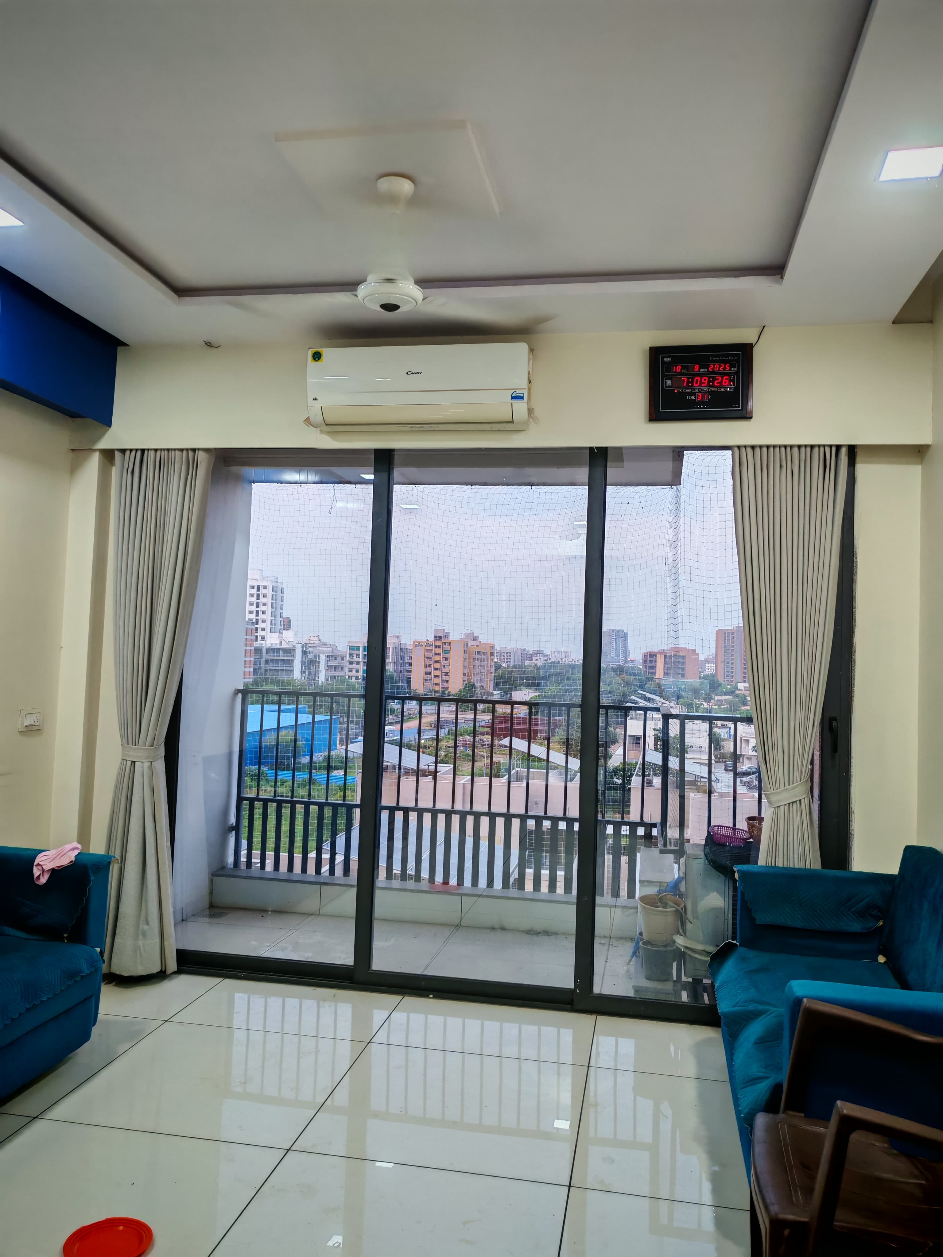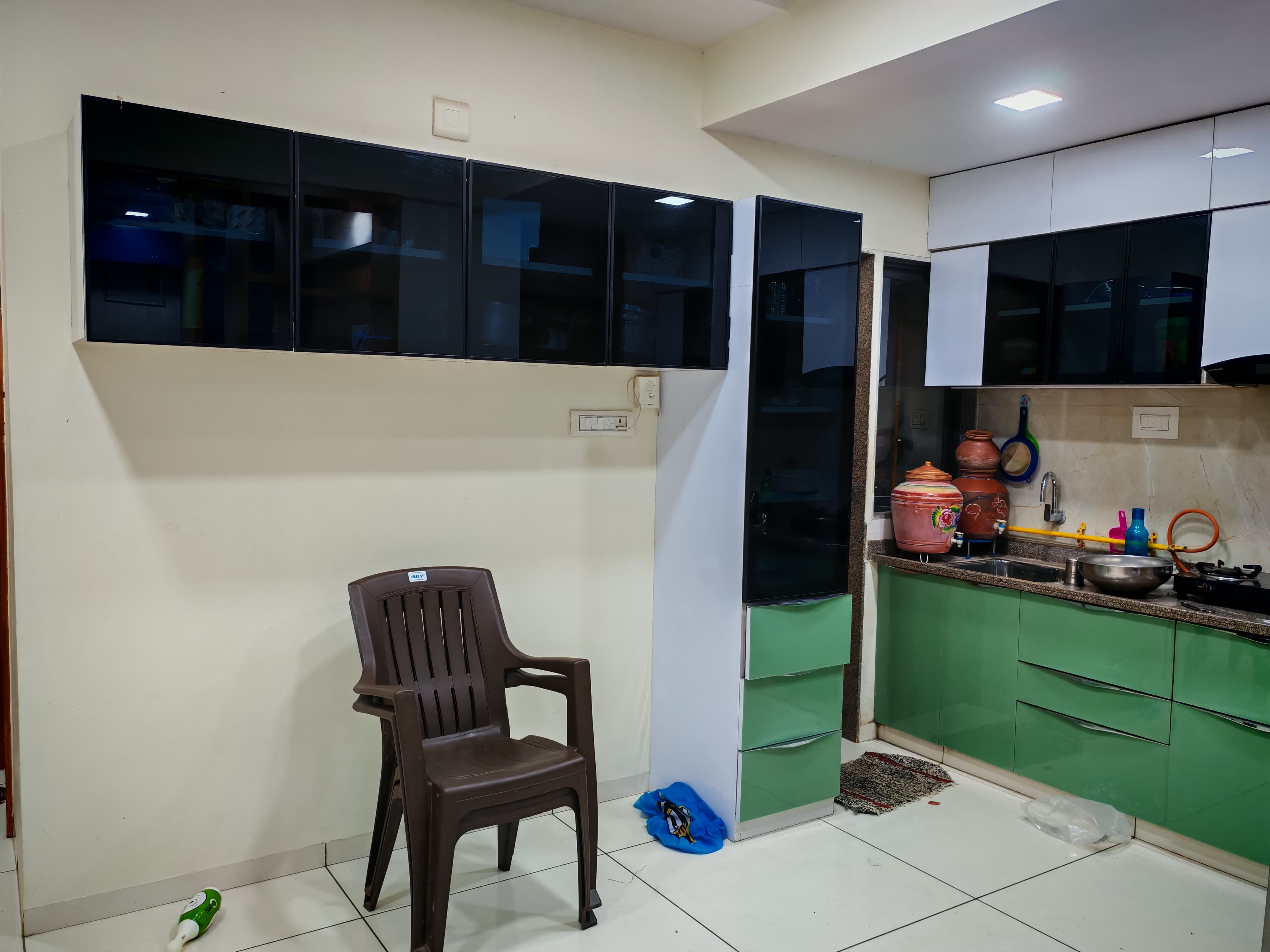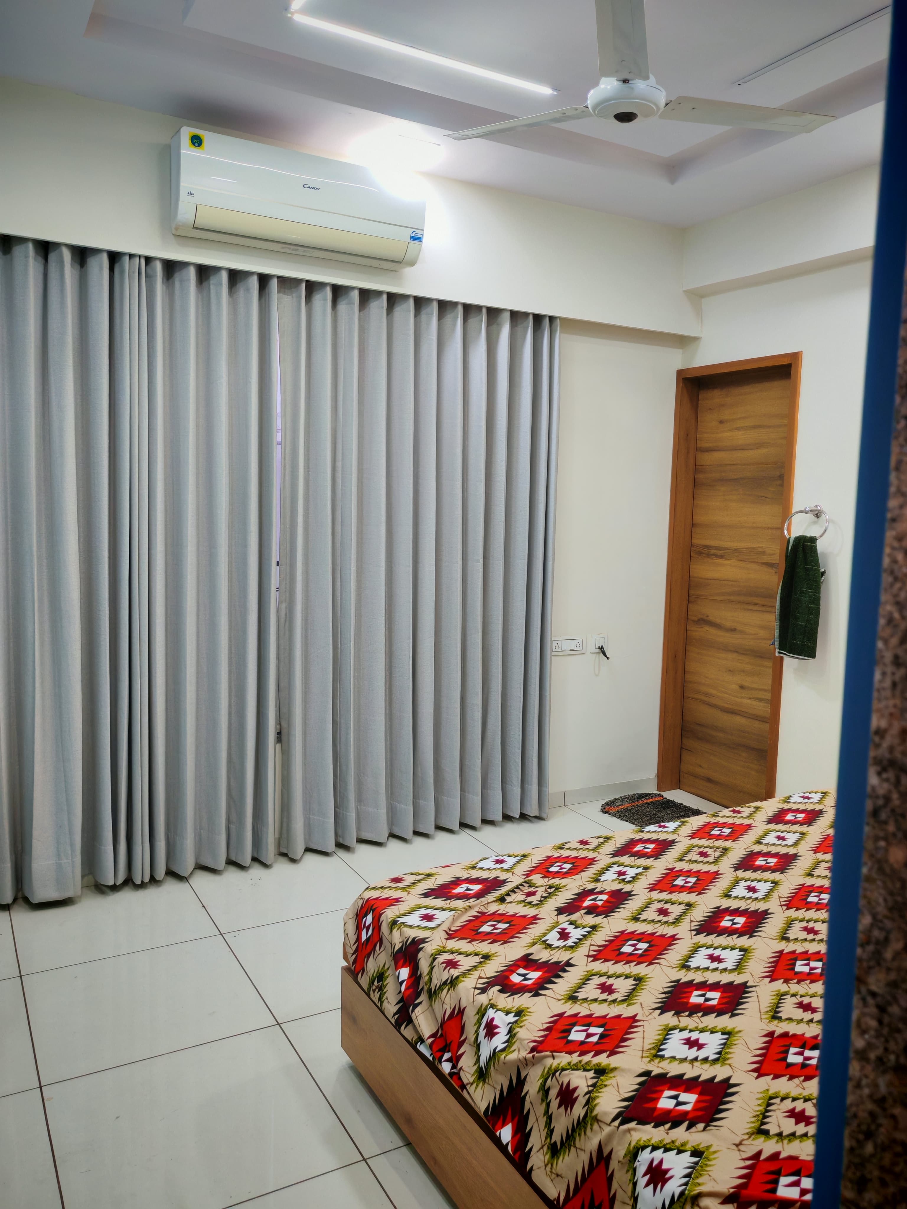 Bathrooms:3Balcony:10 To 1 Year OldFan:6Geyser:2Light:27AC:3Wardrobe:3Single TowerMaintenance:++Modular Kitchen Sofa Fan AC Double Bed Wardrobe Fridge Light Geyser Curtain Stove Exhaust Fan Chimney For Family
